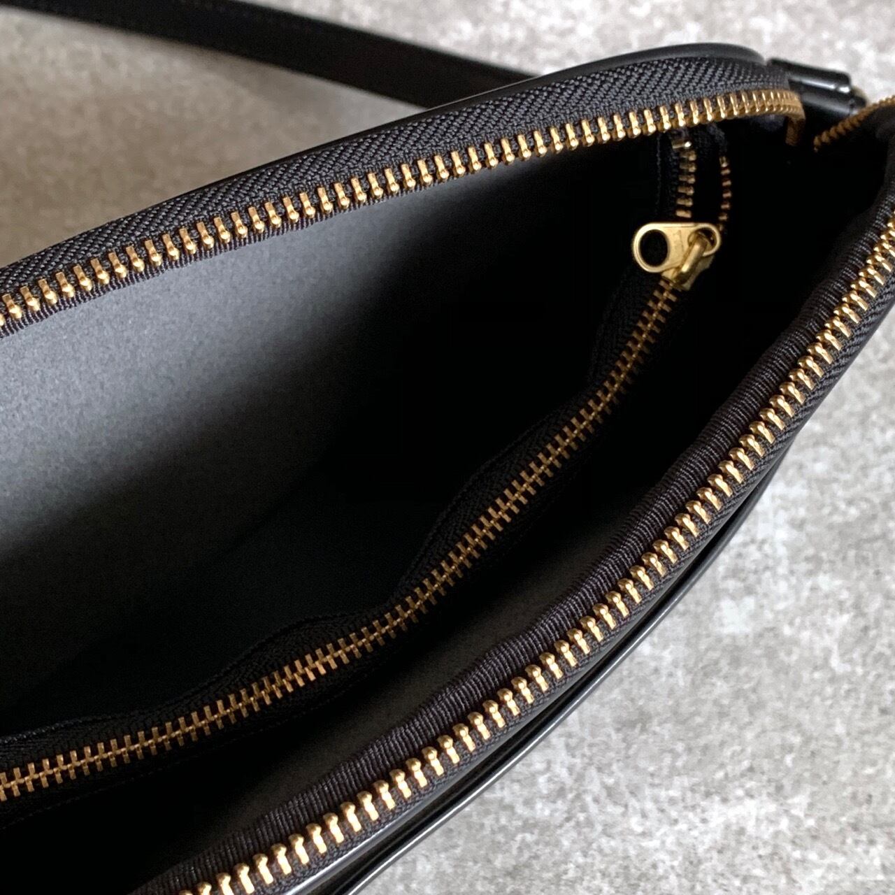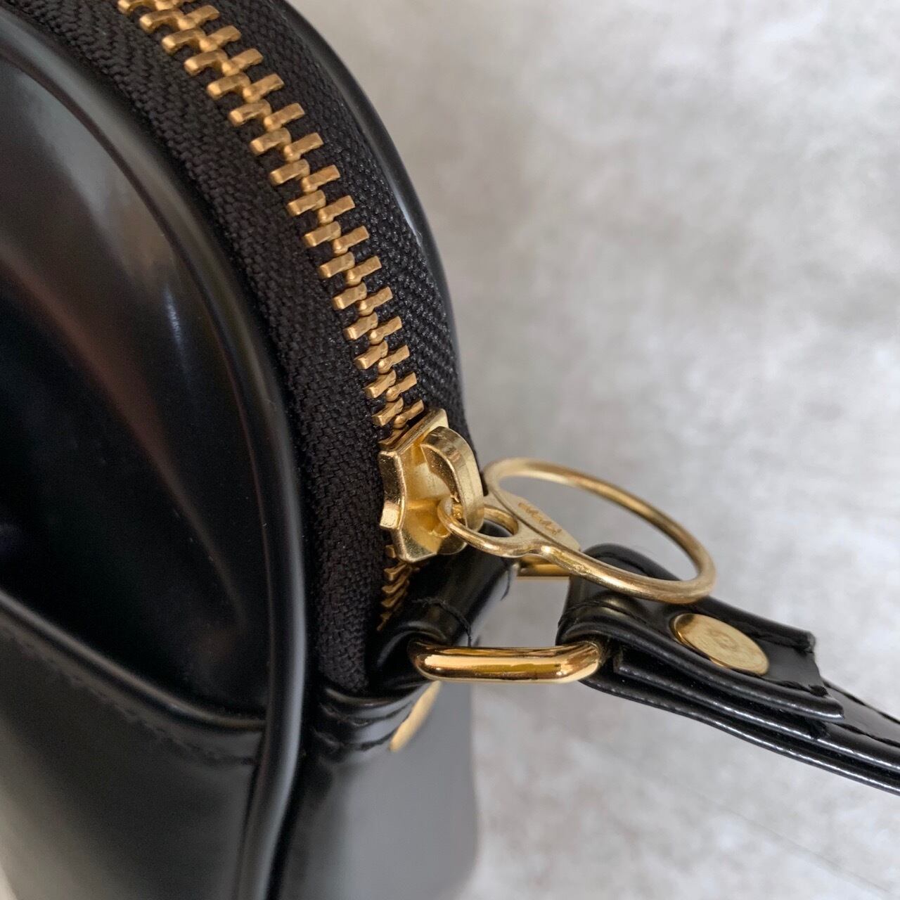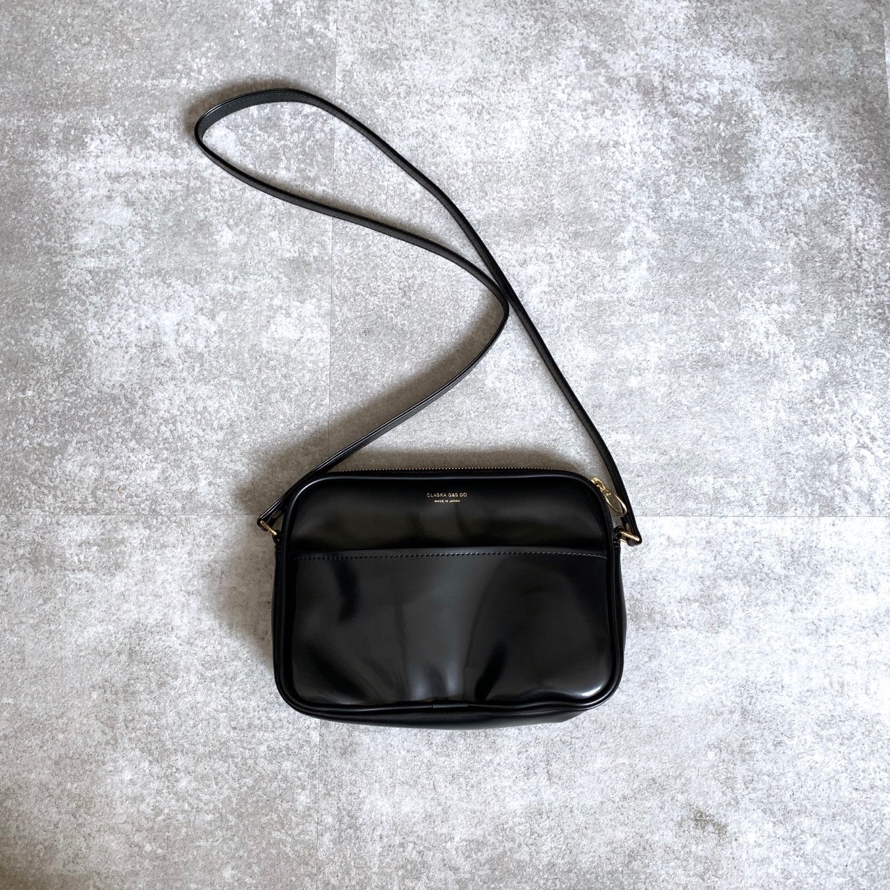 肩掛けでも斜め掛けでも使いやすく、様々な装いに合わせやすい定番の黒。エナメルほどではない、上品な艶感が光ります。