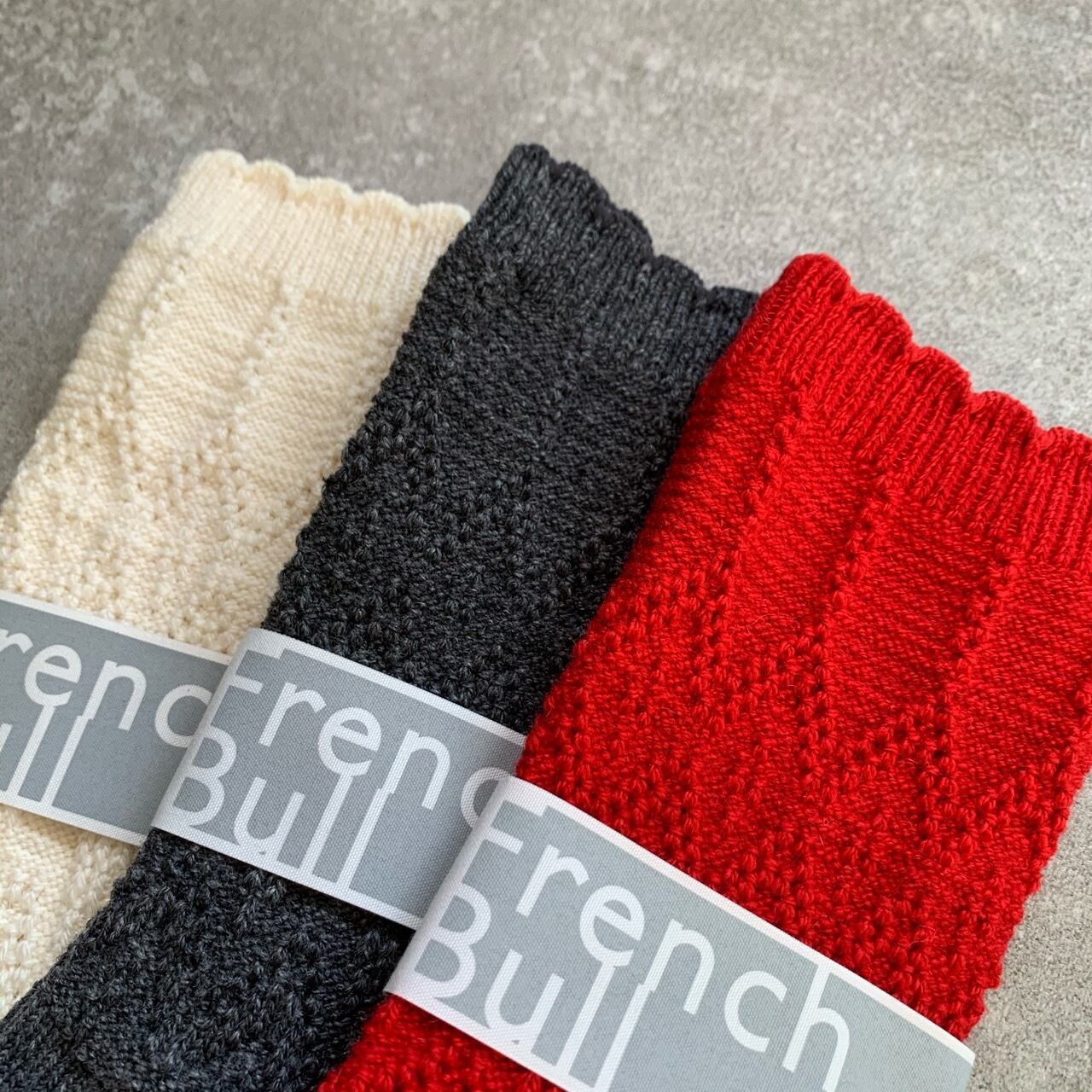 メッシュ編みで表現した柄と、TOPのピコットがポイントの1足です。