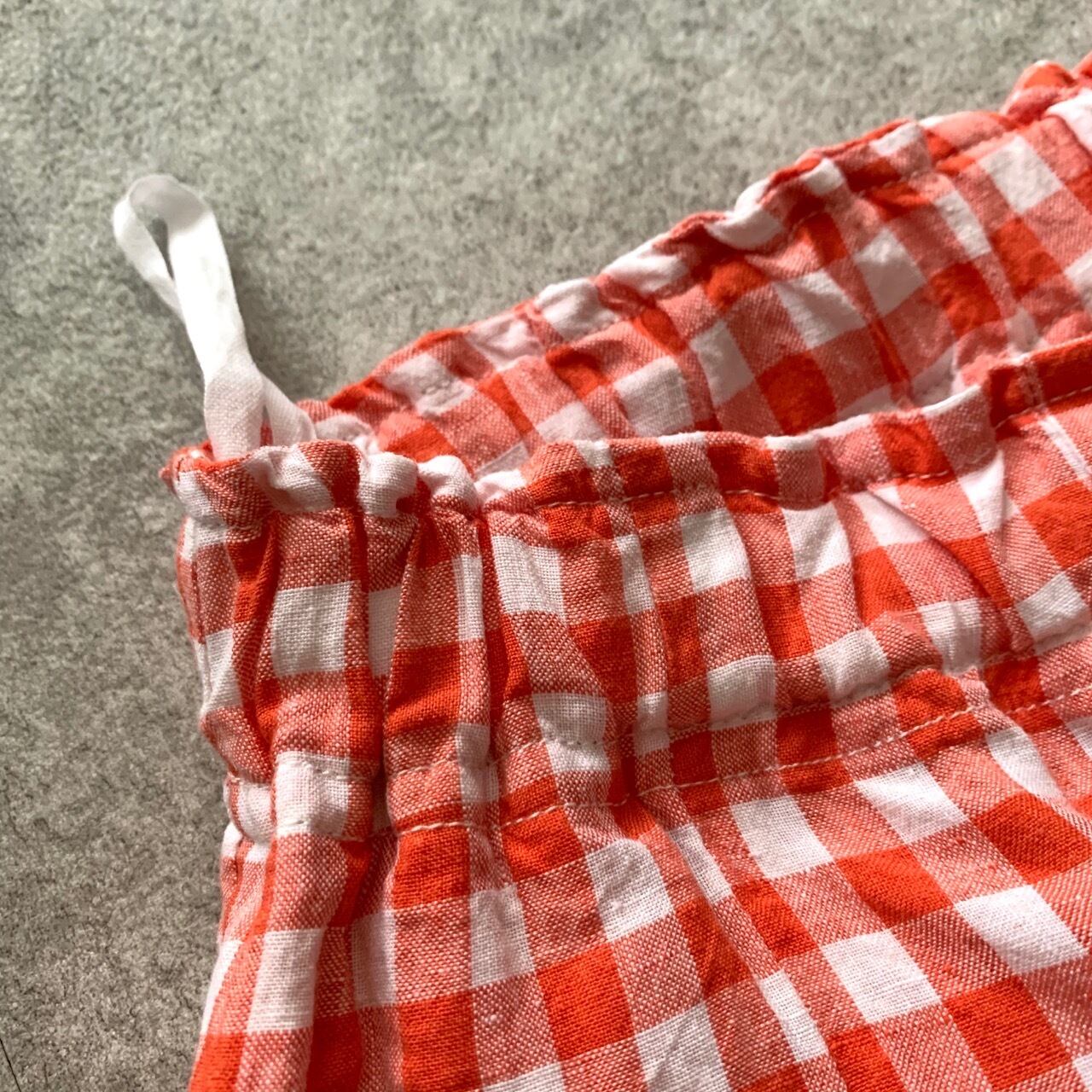 両サイドにはポケットが付いて,ウエストはゴムと紐で調節可能です。