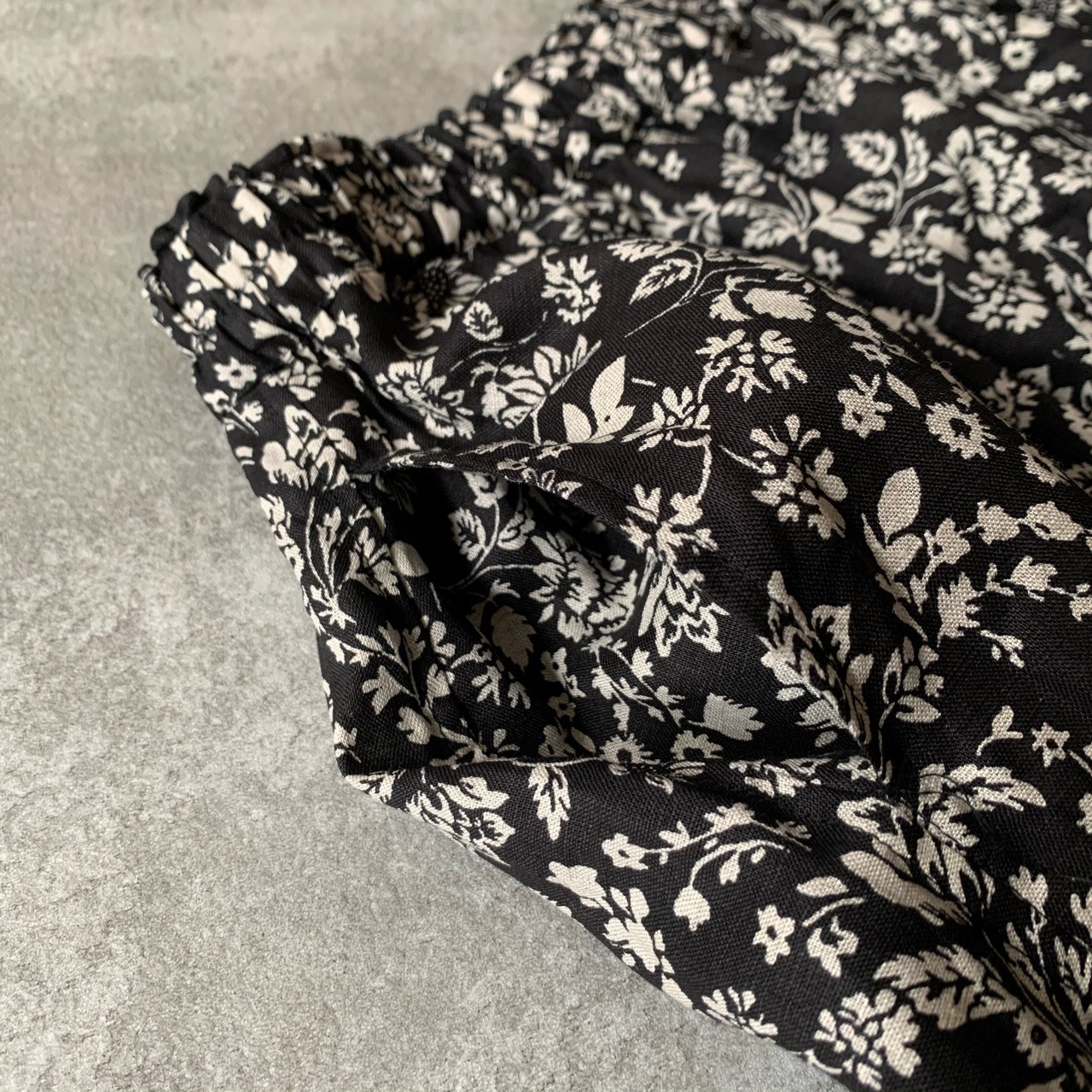 クラシカルなフラワープリントが映えたオリジナルリネンのパンツです。