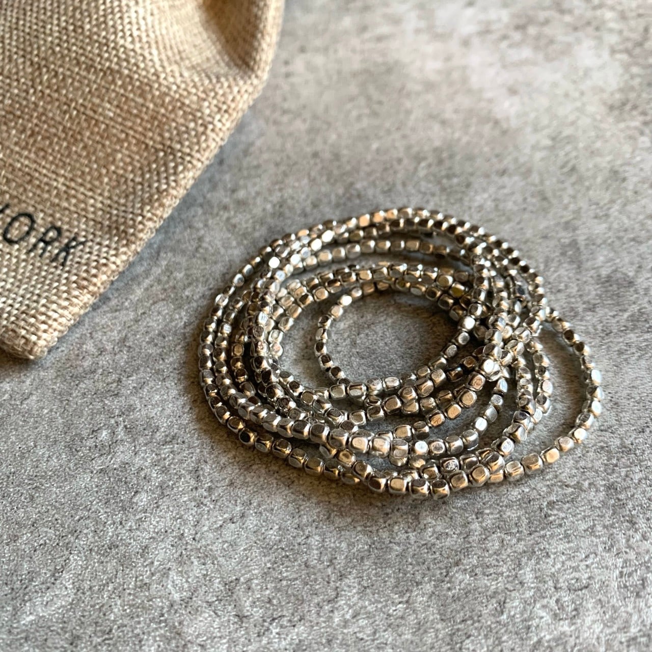 真鍮にシルバーメッキをほどこしたビーズのネックレス。ハンドメイドのビーズはどれも少し個体差がありますが、手仕事の温かみが感じられて、それがかえって良い風合いです。 ロングタイプのネックレスは、ダブルにして首元を華やかに彩ったり、何重にもしてブレスレットとして使ったり。コーディネートによって、いろいろな付け方をお楽しみ頂けます。シンプルにTシャツやリネンのワンピースと合わせて、デイリーにお使いください。経年変化のため色が変化する場合がございますが、商品の風合いとして、お楽しみください。