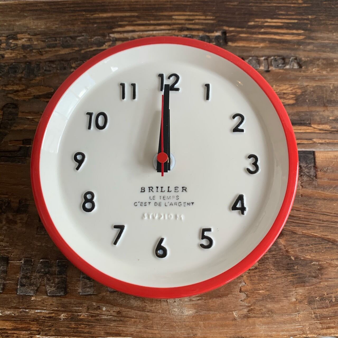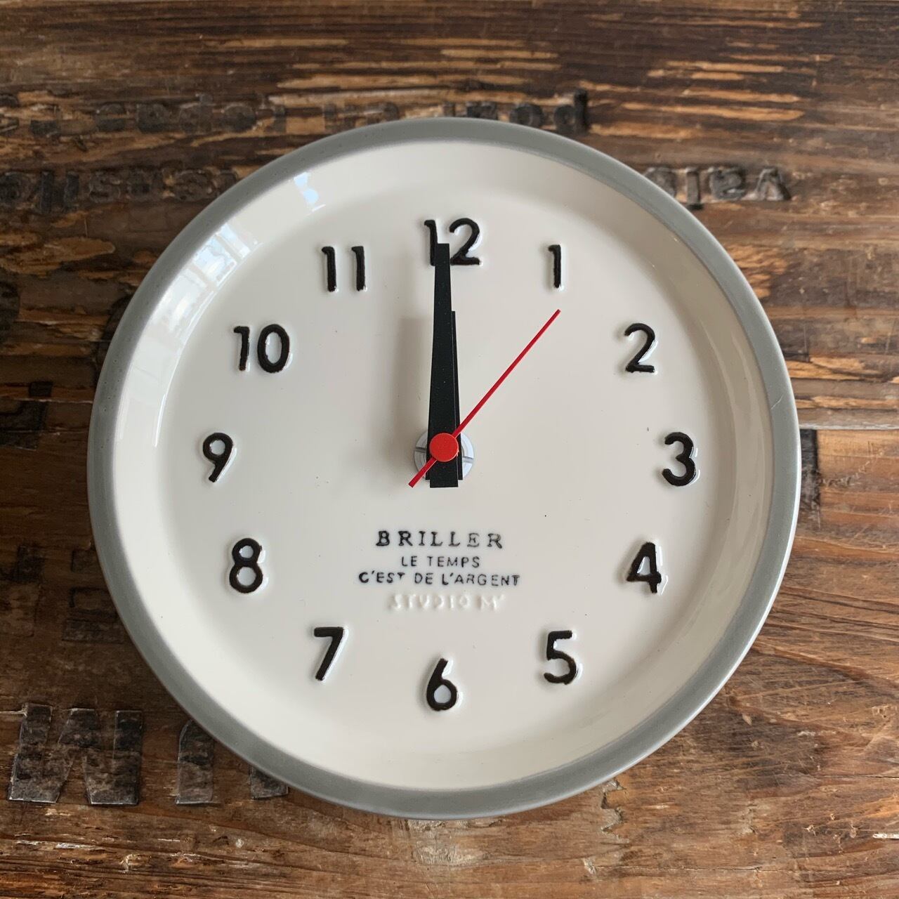 ブリエはフランス語で「輝く」という意味。あなたの時間が輝きますように、という願いを込めて名付けられました。文字盤の数字は職人さんが手書きで絵付けをしているので、一つ一つ線の太さや濃さが微妙に異なり、手作りならではのやさしさが感じられます。「色化粧」という化粧土に色を混ぜた土を使うことで温かみのある色合いになり、どこか懐かしい雰囲気を感じます。そんな落ち着いた表情のブリエは、名前の通り日々の住まいをやさしく照らしてくれます。