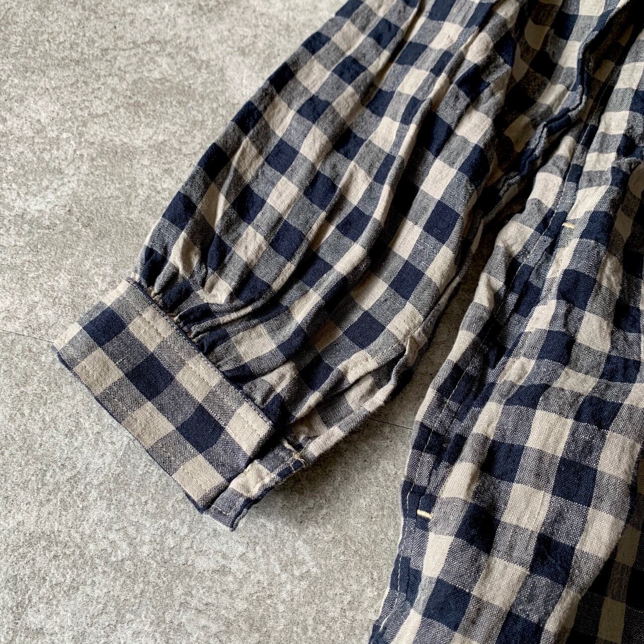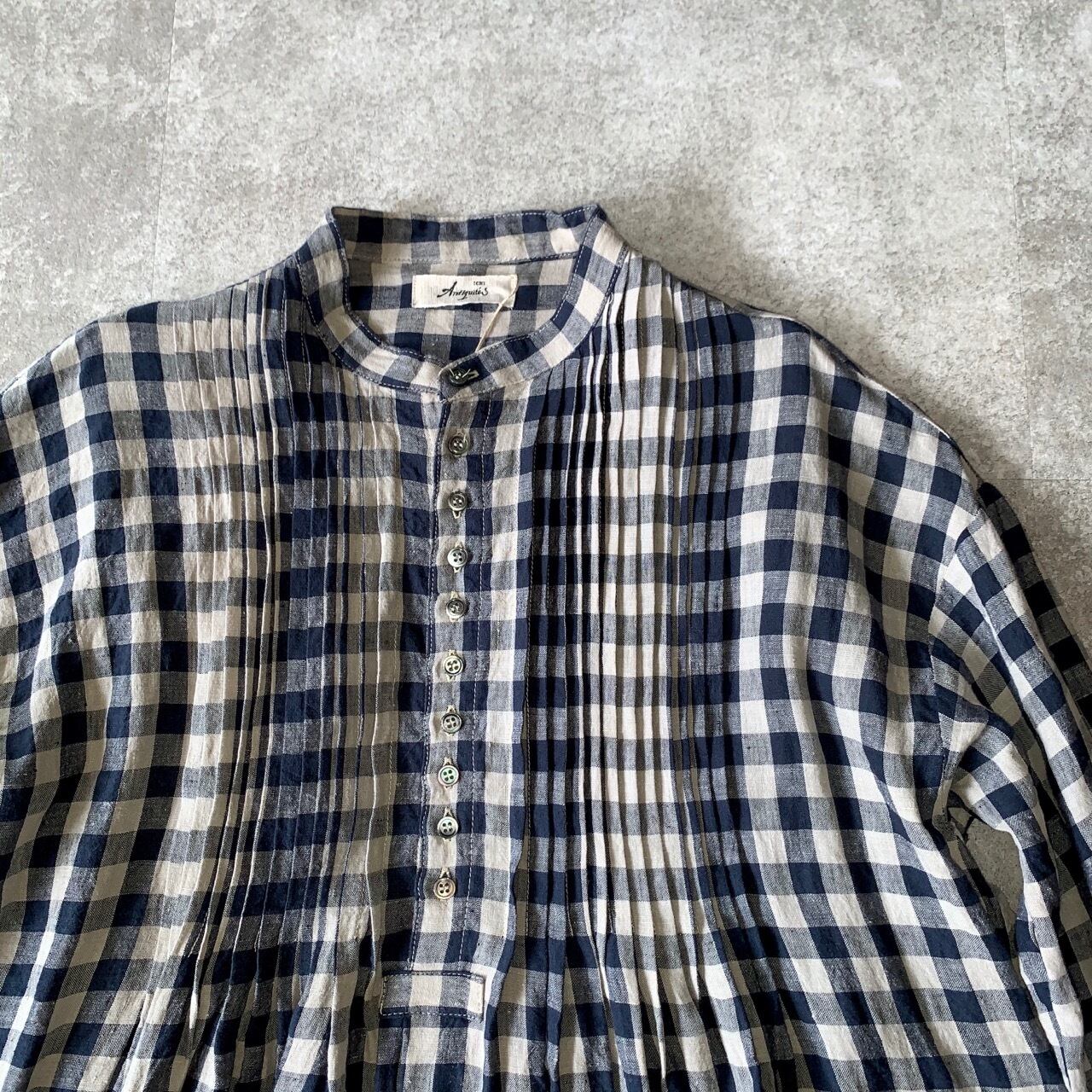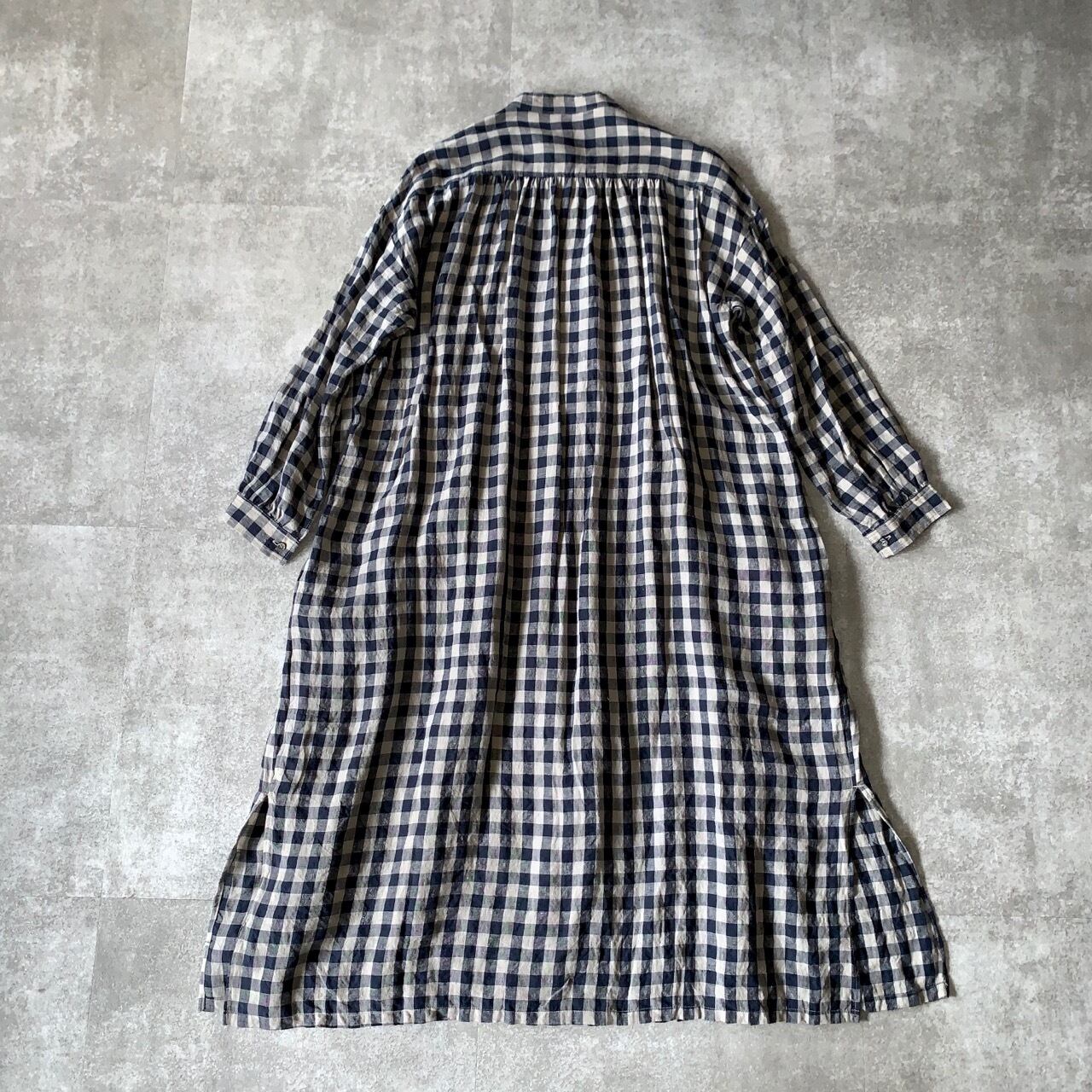 ichiAntiquités Linen AZUMADAKI Gingham Tuck Dress