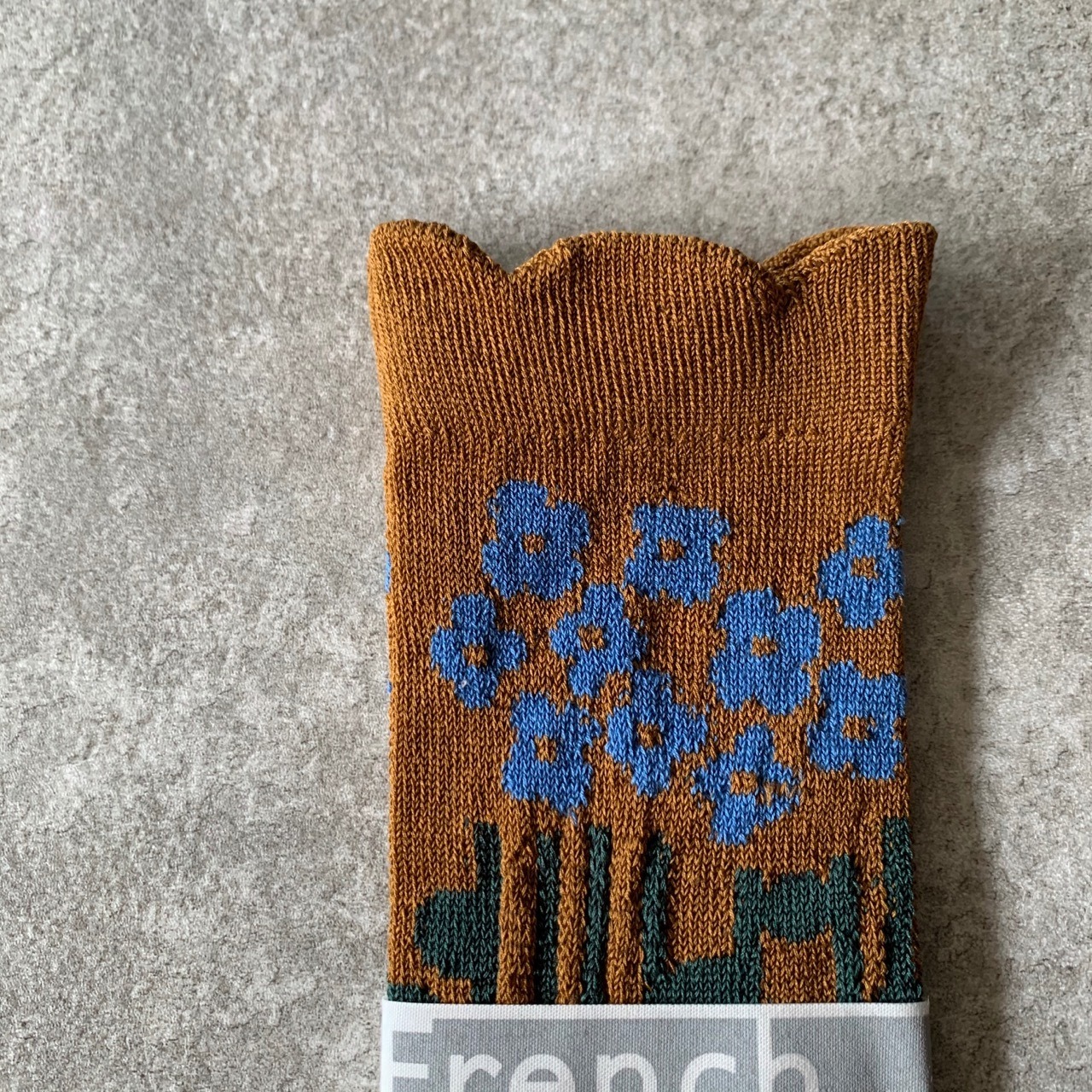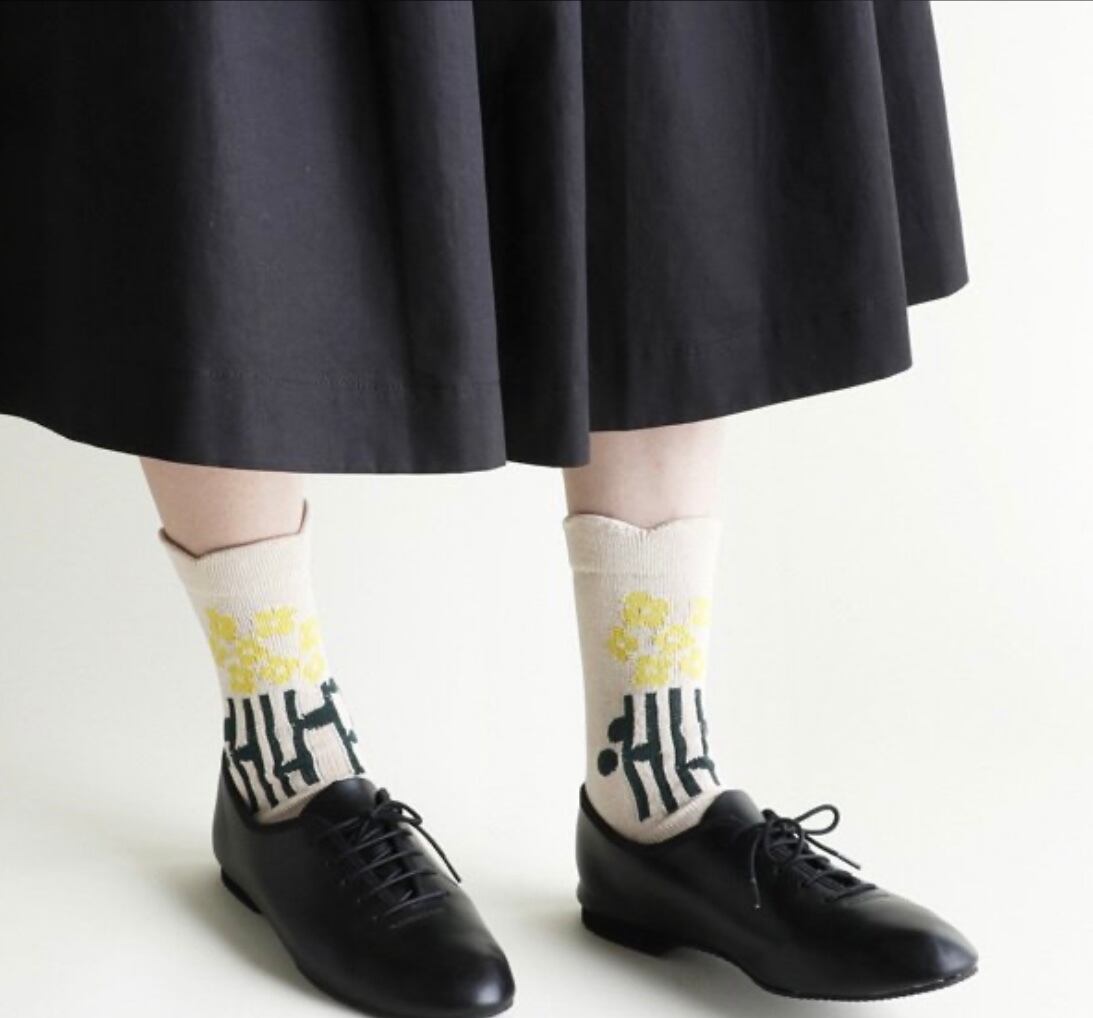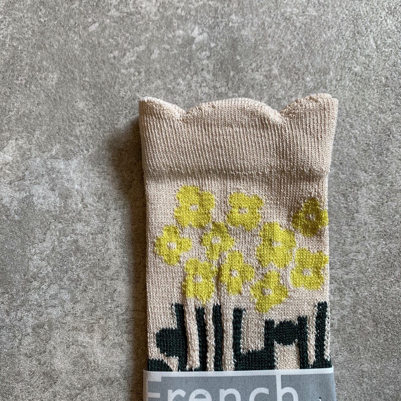 お日様の光に照らされてるお花をイメージした柄のソックスです。
