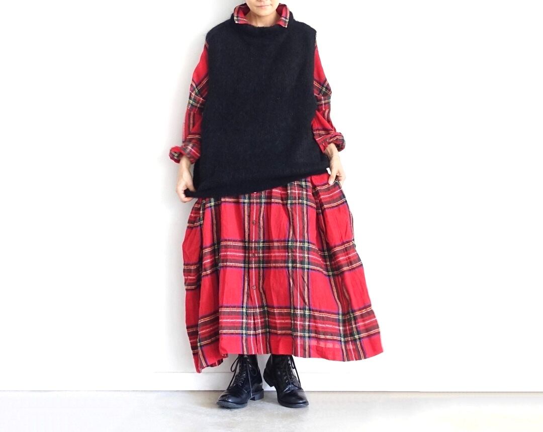 アルパカ混紡の糸で編み上げたあとシャギー加工を施した暖かな風合いのベストです。