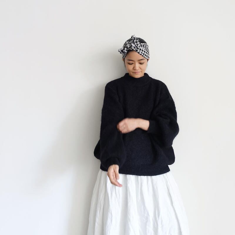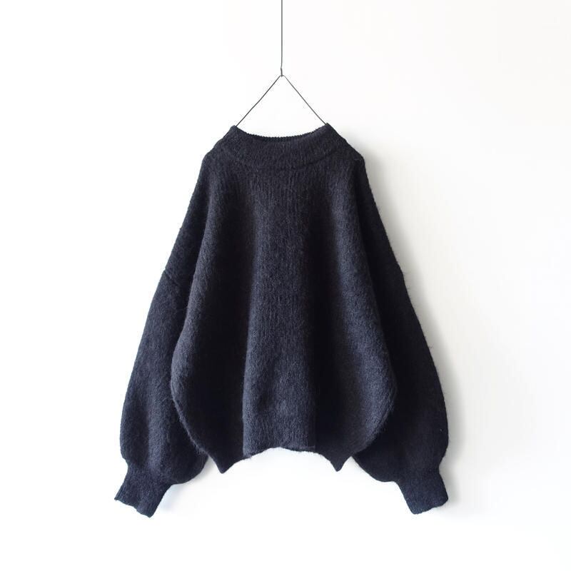 アルパカシャギーならでは風合いと軽やかな素材感、重い印象にならずレイヤードできるブラックニットです。同系色のブラックやグレーなどとのレイヤードにも映えてニュアンスあるスタイルに。シックなカラーも、きれいなカラーにもスタイルを凛と引きしめる効果のある BLACK。