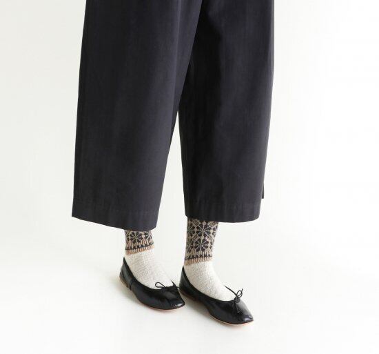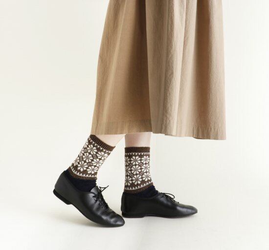 風車をイメージした柄のソックスです。ウール混糸で厚手に編みたてました。