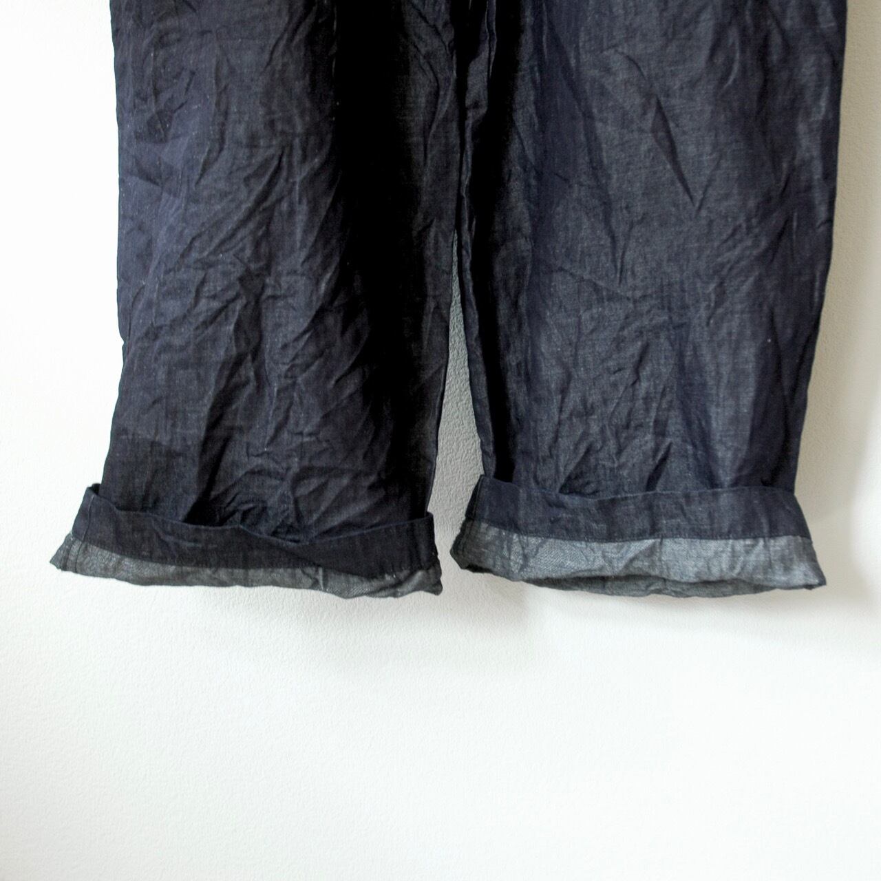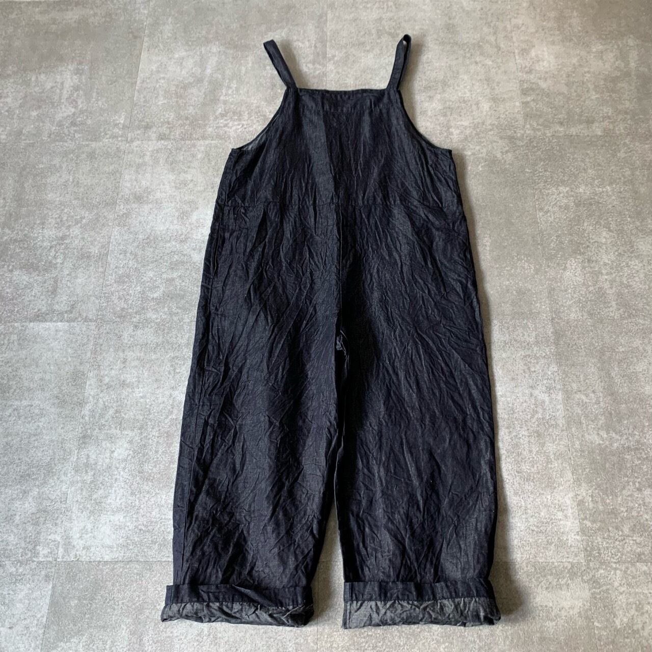 ゆったりサイズで、シワ感と光沢感が上品なサロペット。使えば使うほど柔らかくなって落ち感が出てくるライトデニムです。季節を通して着回して頂けます。