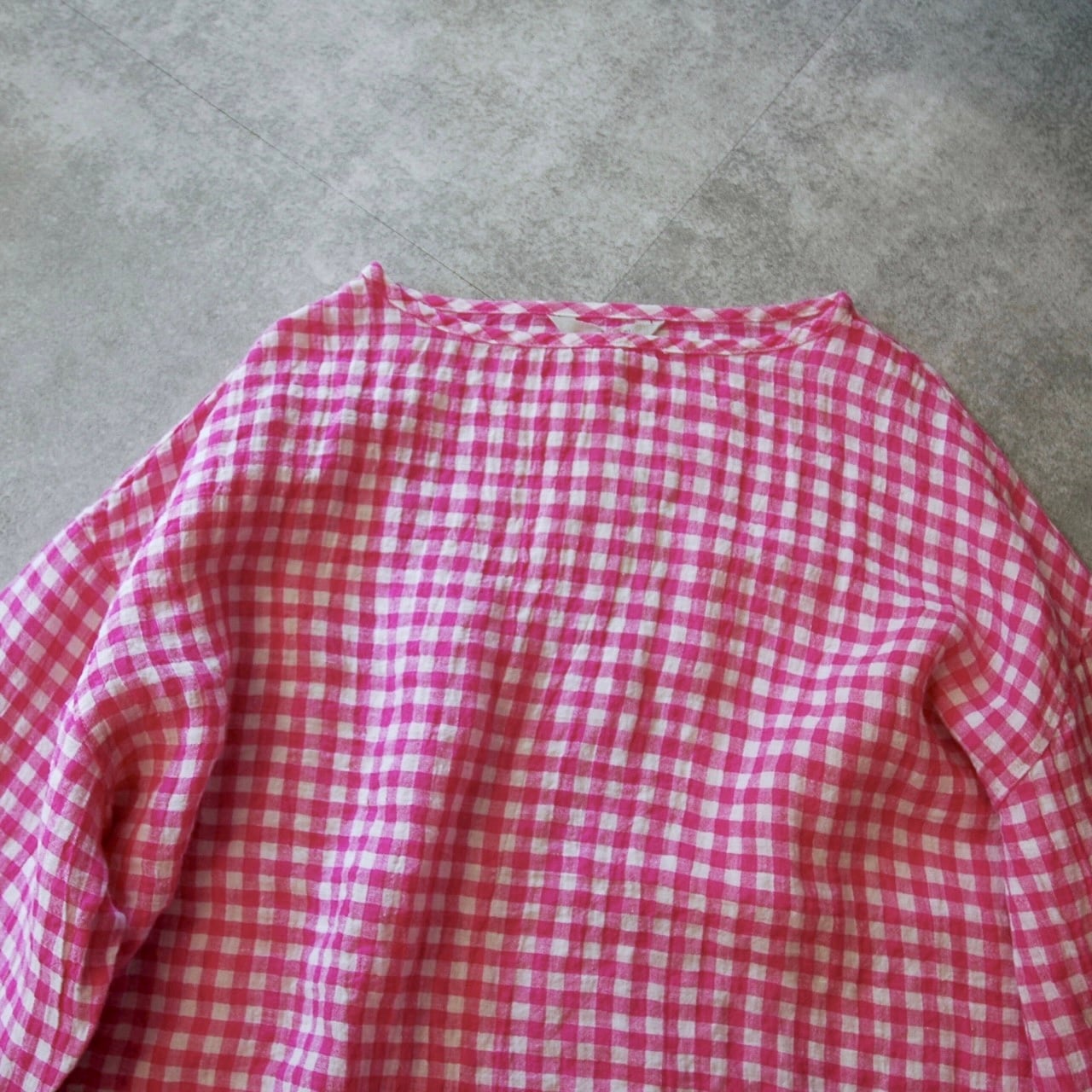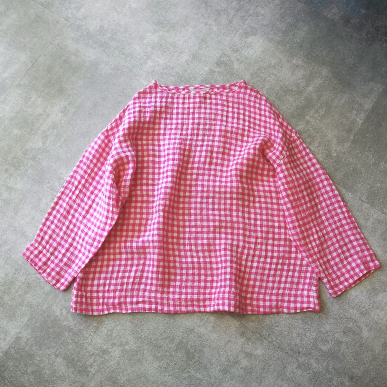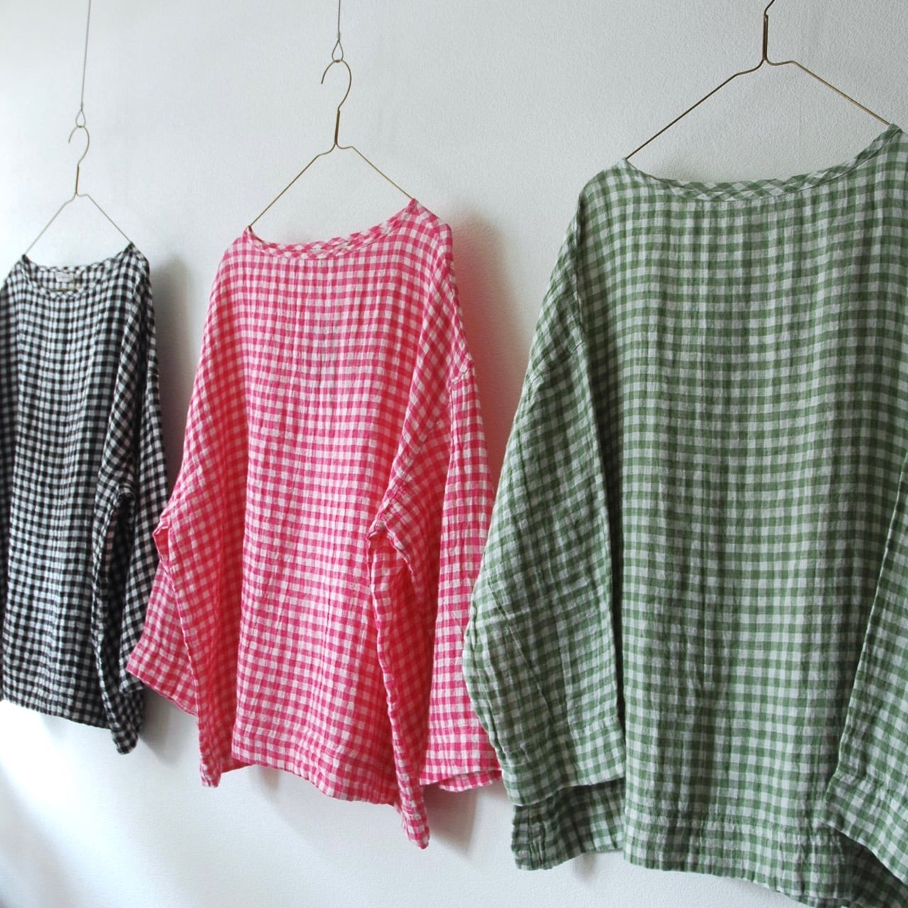 さらっとしたリネン素材の、ギンガムチェック柄が印象的なプルオーバー。