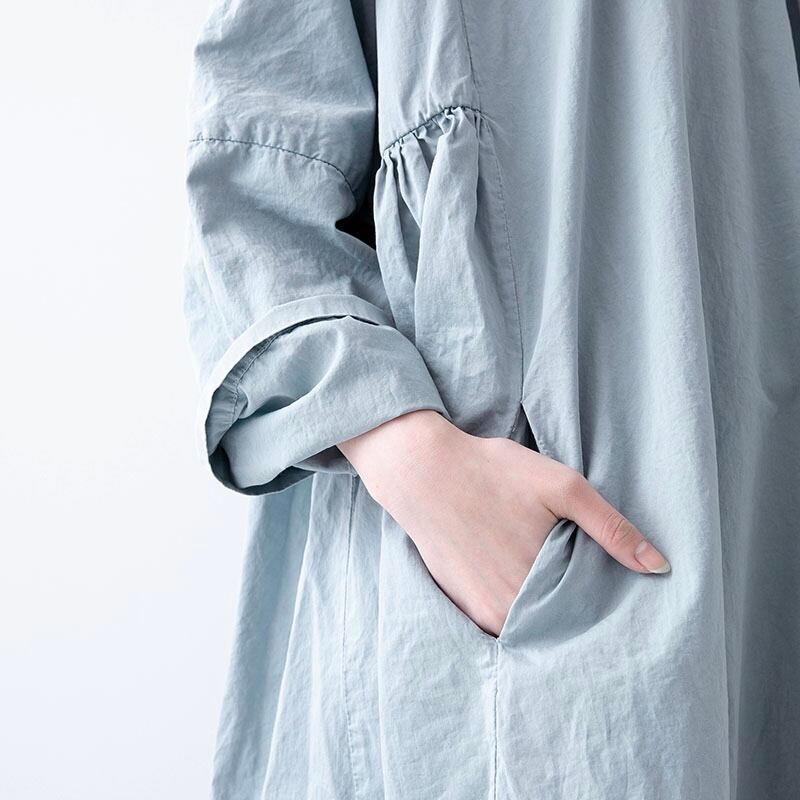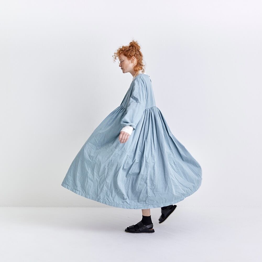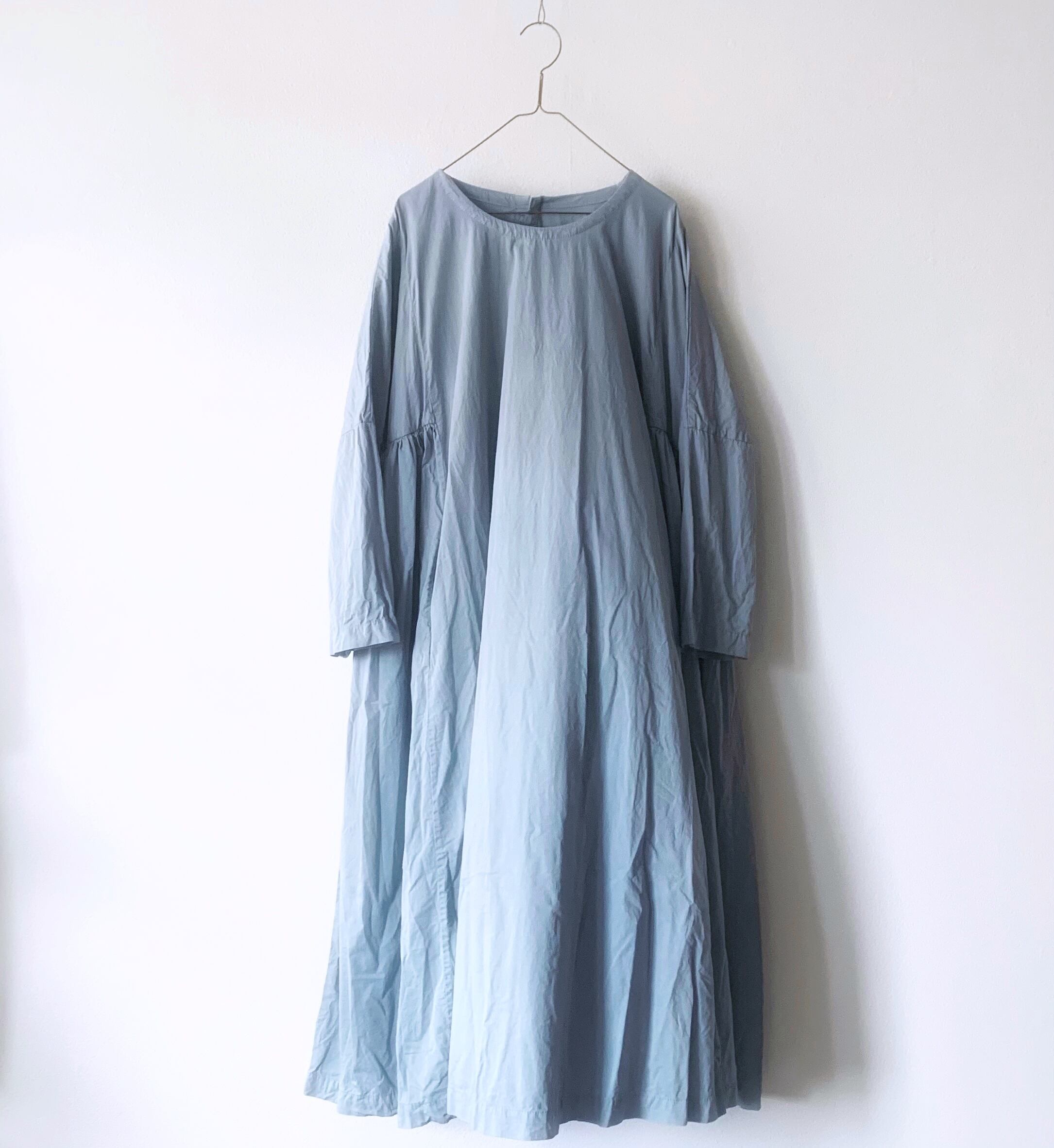高密度のコットンサテン生地を使用したVeritecoeur定番のギャザーワンピース。