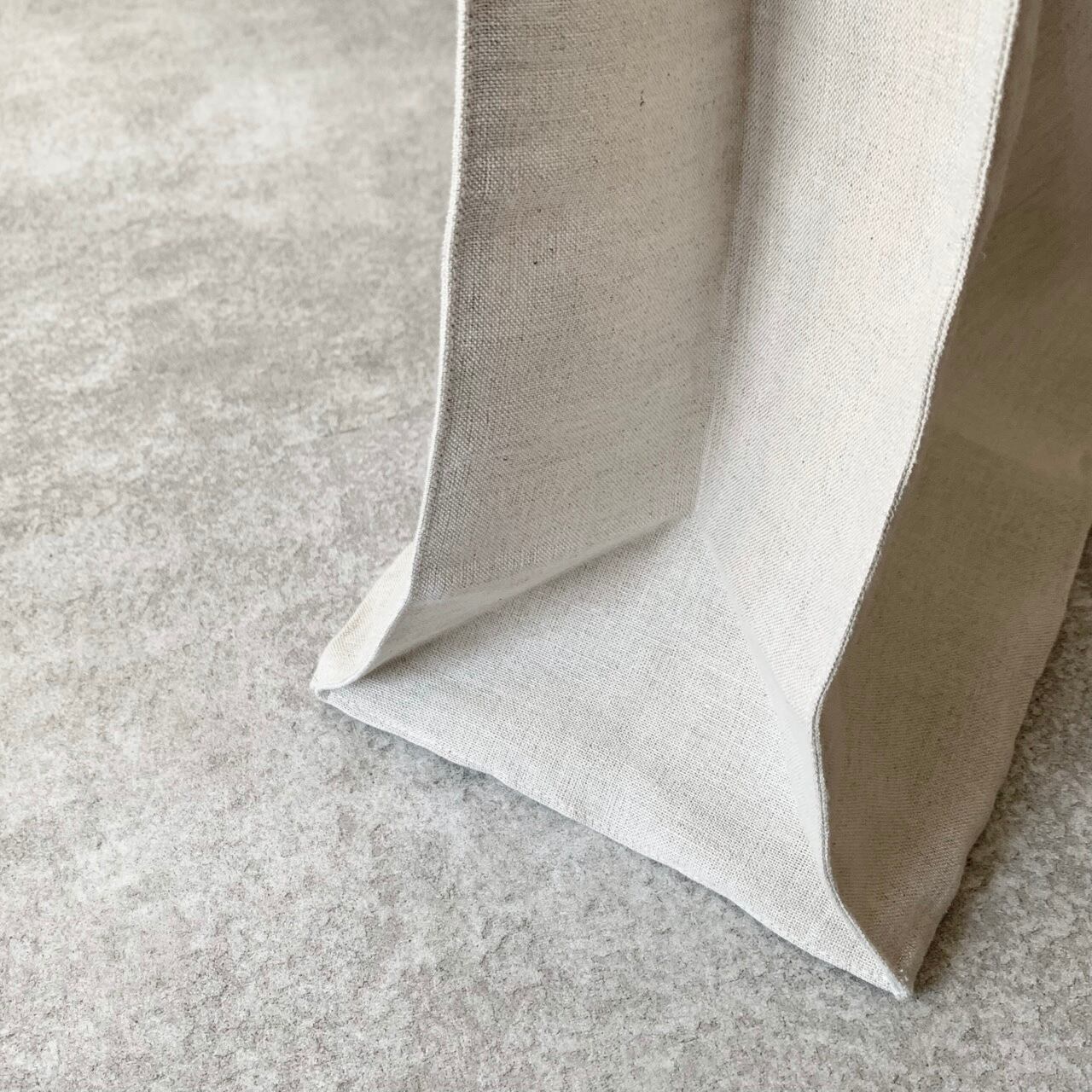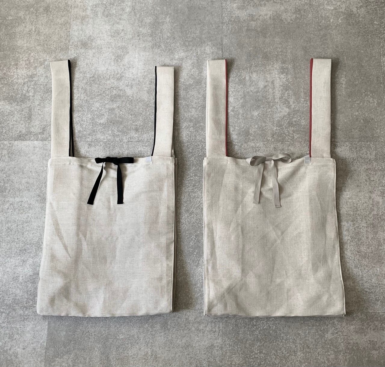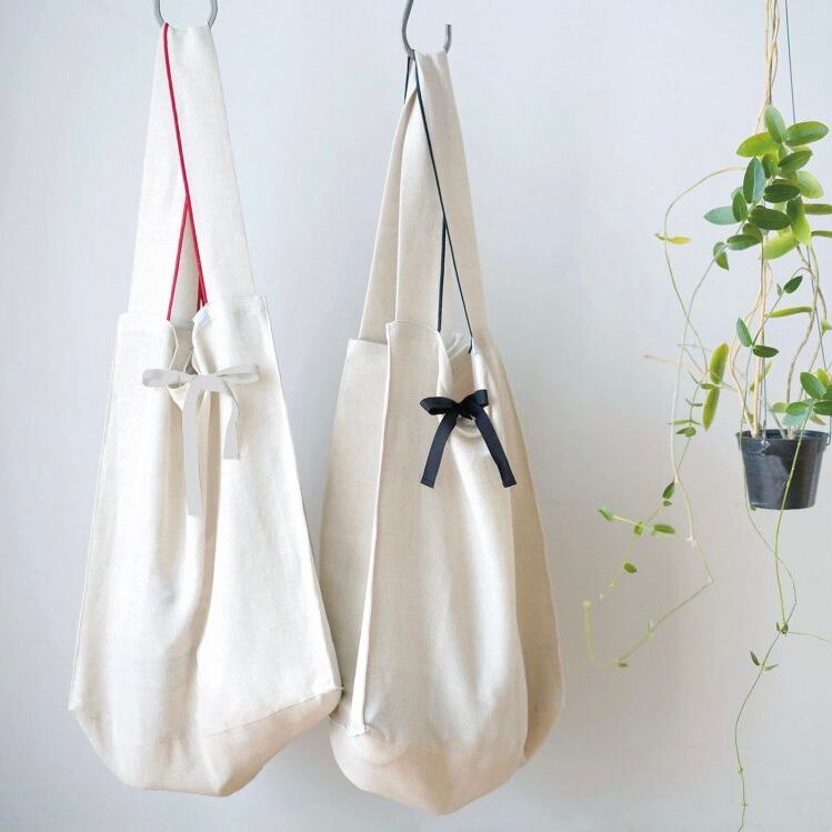 お買い物に行くときやサブバッグとして大活躍のリネンコットンのマルシェバッグです