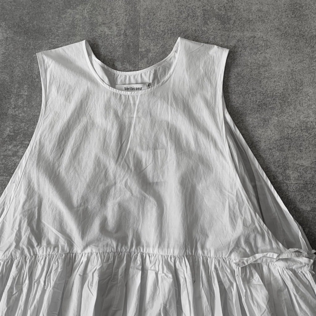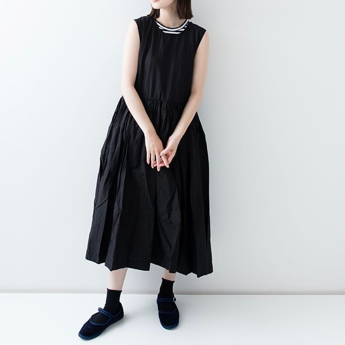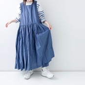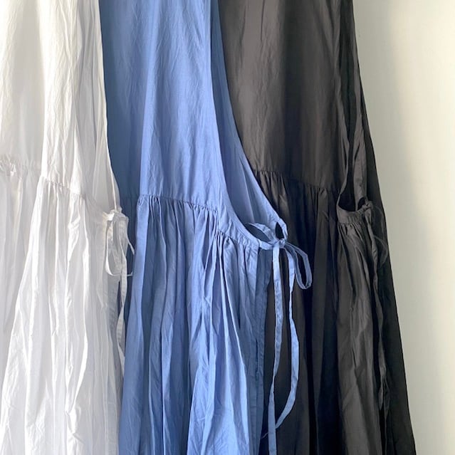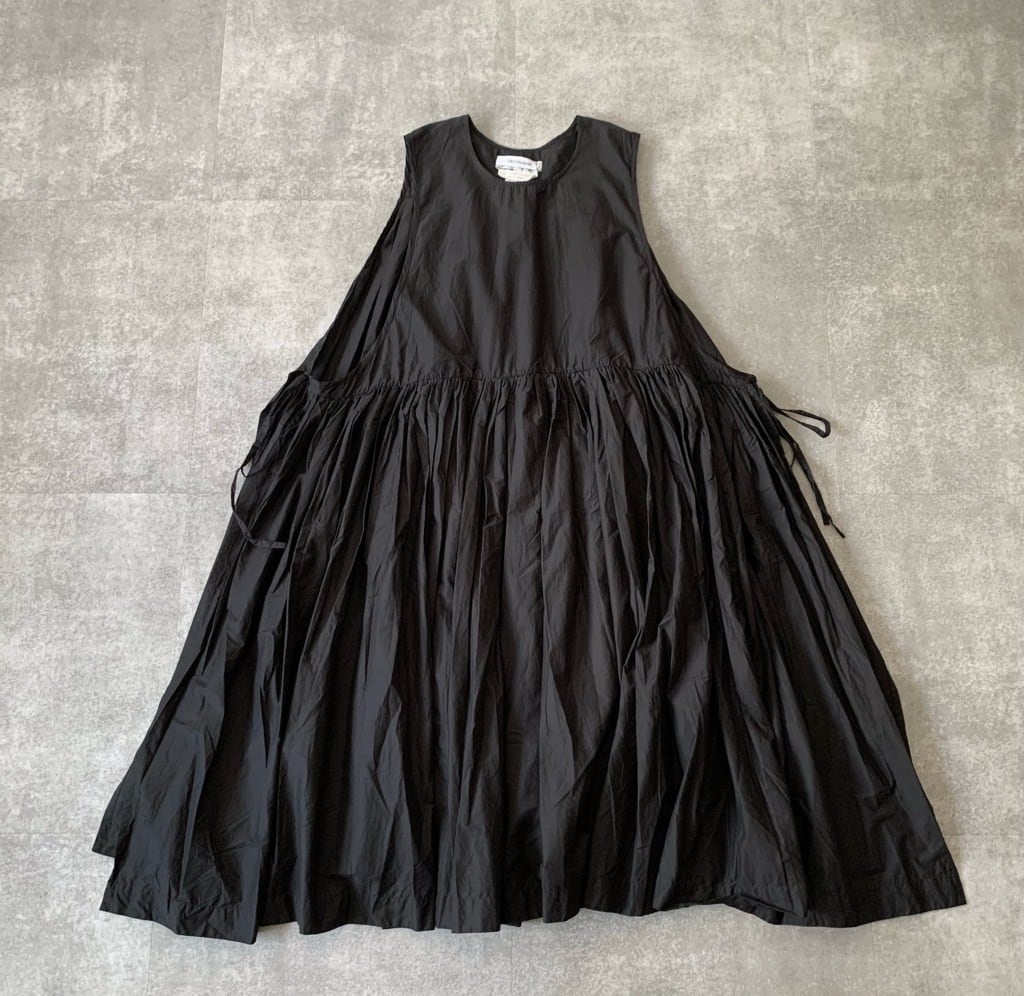 洗いざらしの様な自然な風合いが心地よく、サラリとした肌触りです。前身頃、後ろ身頃 それぞれに繊細なギャザーを施し、美しいシルエットが魅力の1着です。サイドに紐が付いており、結び方次第で色々な着こなしが楽しめます。スリーブレスなので夏も涼しくご着用頂けます。