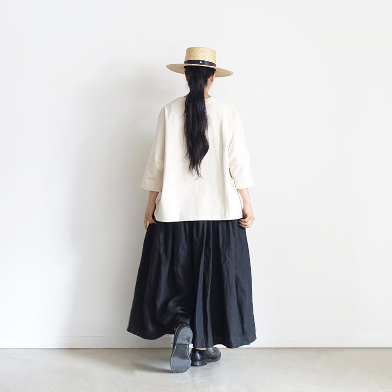 どんなボトムスとも合わせやすい着丈感、オーバーシルエット同士のラフなスタイリングにもぴったりです。肘下までの袖丈でシーズン通してバランスよく着まわせます。
