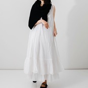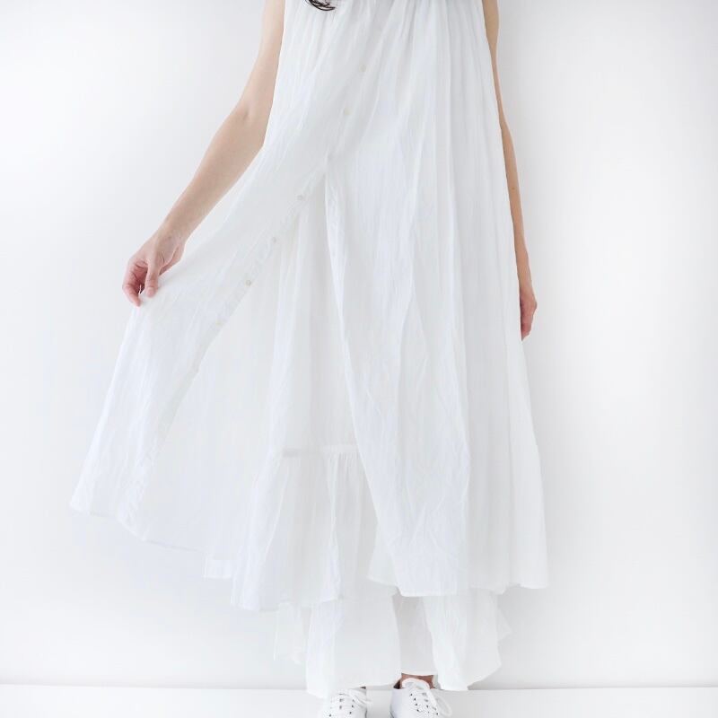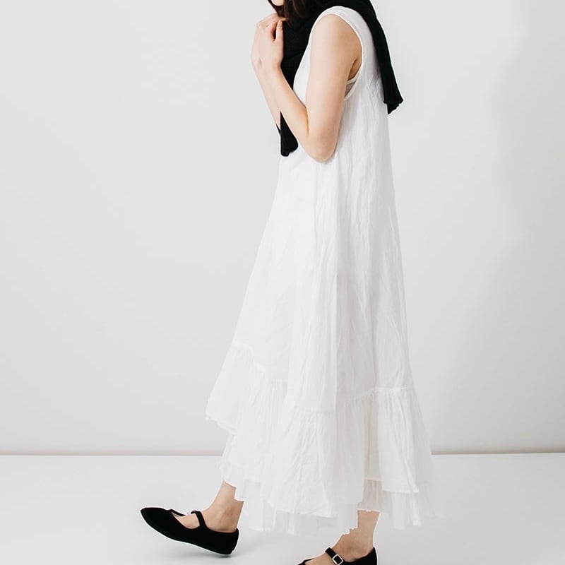 ふわりと優しい手触りのコットンを使用した、インナーワンピースです。裾の切替部分には、細かく繊細にギャザーが寄せられ、フリルの程よいボリューム感を作ってくれています。首回りはシンプルなデザイン。重ね着し易い、薄手の素材感でデイリーにお手にしていただけるワンピースです。