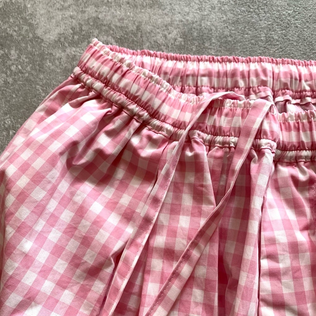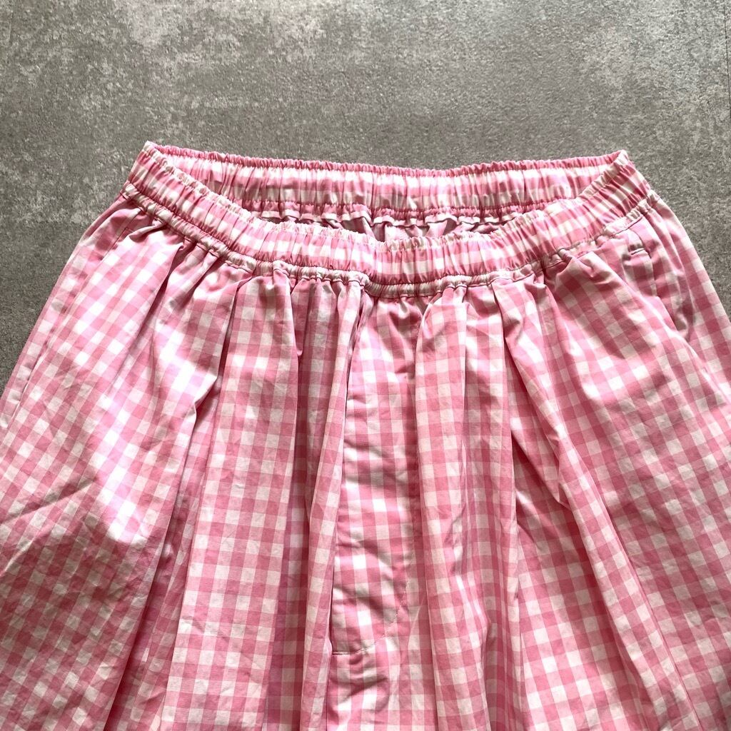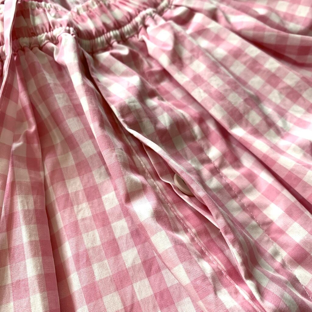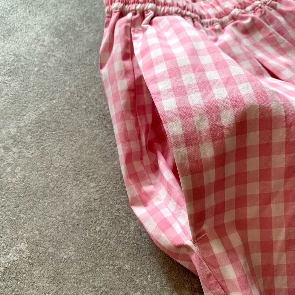 裾の切替部分には、細かく繊細にギャザーが寄せられフリルの程よいボリューム感を作ってくれています。ウエストは総ゴム、全体的にゆとりを持たせたサイズ感です。