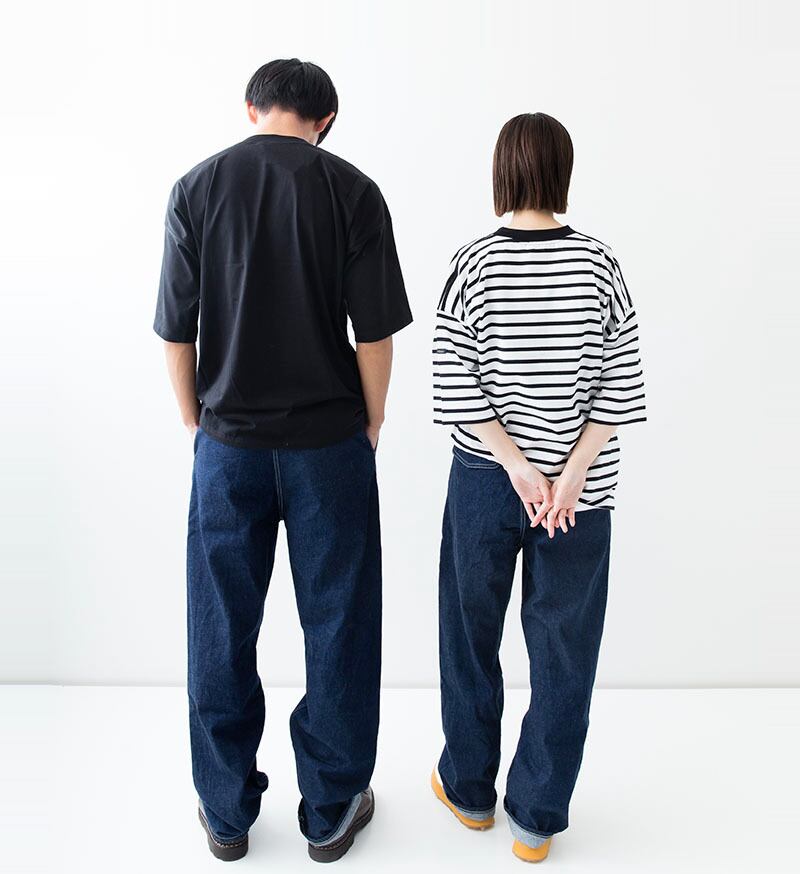 腰回りにゆとりを持たせ、フロントにタックの入ったストレートシルエット。