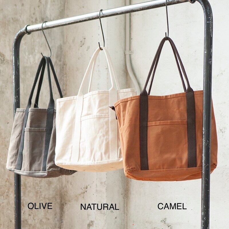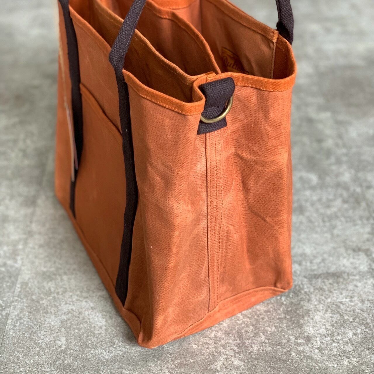 働く人に使って欲しい、必要なもの一式を詰めて移動できるバッグ。 仕切りがあり、ボトルホルダーも付いているので、PCや周辺機器、ペンやノート、水筒やペットボトルを分けて収納できます。 サイドに付属するDカンに市販のストラップを取り付ければ、ショルダータイプとしても使用可能。カラビナ付きの鍵やお気に入りのキーホルダーを付けるのも◎。16オンスの丈夫なワックスキャンバス素材、程よい収容力で、「日頃からガシガシ使い倒したい。」そんな気持ちが湧き出てきます。内側にさり気なく施されたタグもポイント。