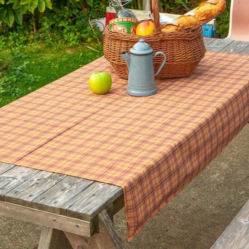タータン柄をあしらったテーブルクロス。 自宅ダイニングや、アウトドアシーンをノスタルジックで温かみのある空間に仕立てます。 四隅のポケットに小石などの適度なサイズの重しを入れることで、クロスがピンと張ります。 気心知れたいつもの仲間と温かい食事のひとときを。