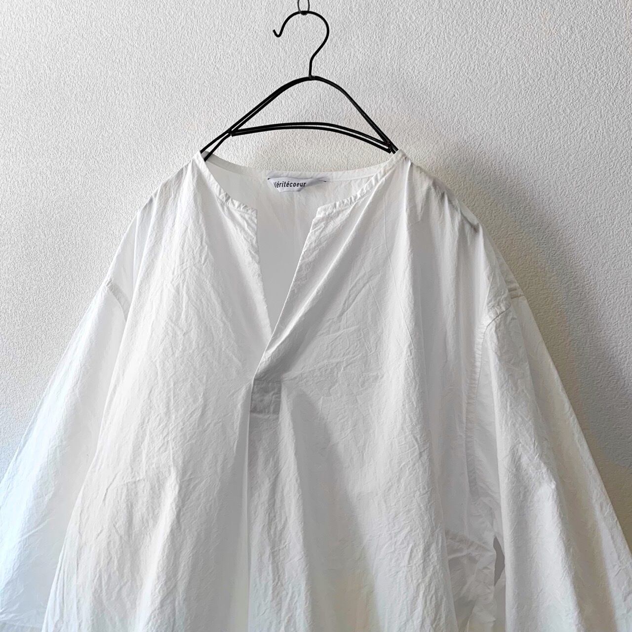 オリジナルの薄手コットン生地を使用したワンピースです。ワッシャー加工を施した細かな皺のある生地は、さらりとした肌触りが特徴。後身頃にランダムなタックを配し、表情を付けています。