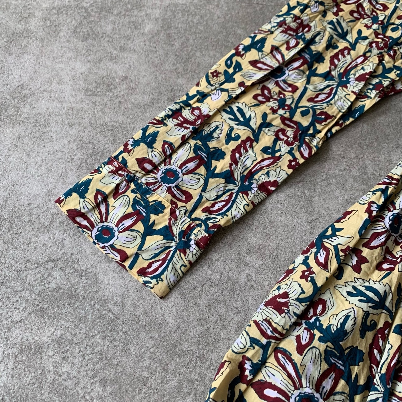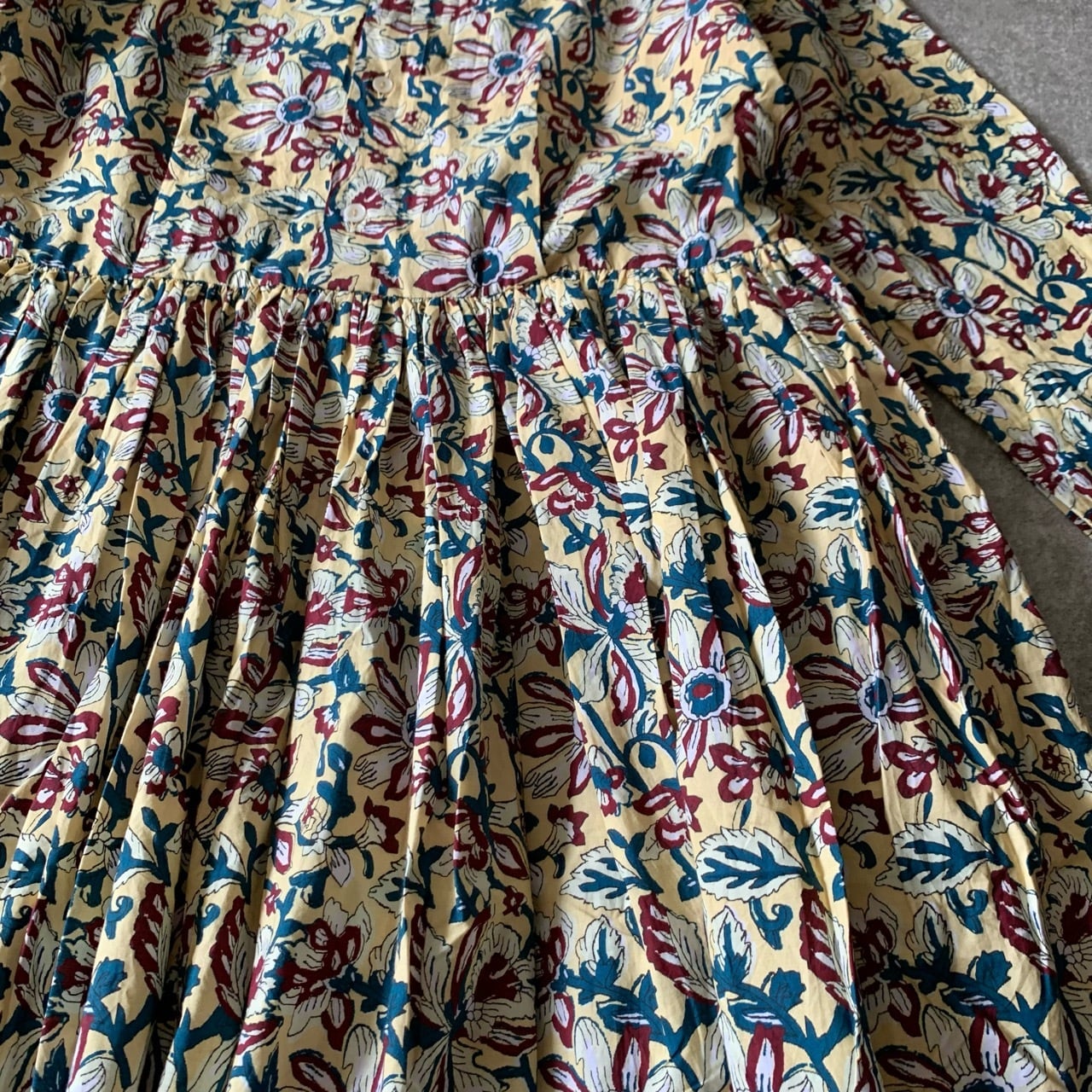 オリジナルのフラワープリントを用いたワンピースです。ハリのあるコットン生地を使用。
