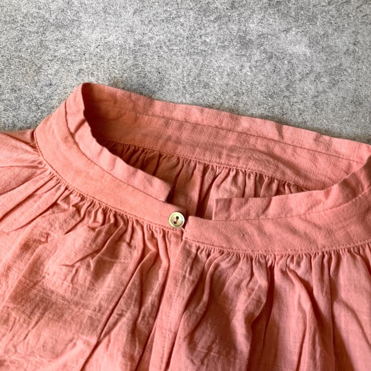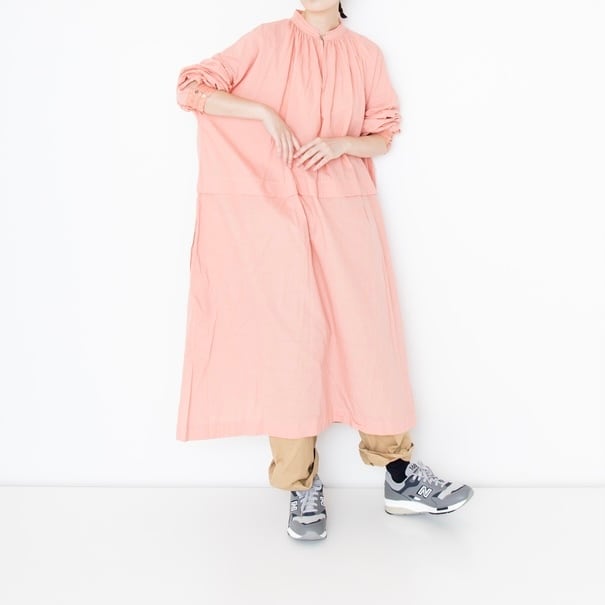 細番手のカディコットンを使用したワンピースです。カフスにレースを使用しました。