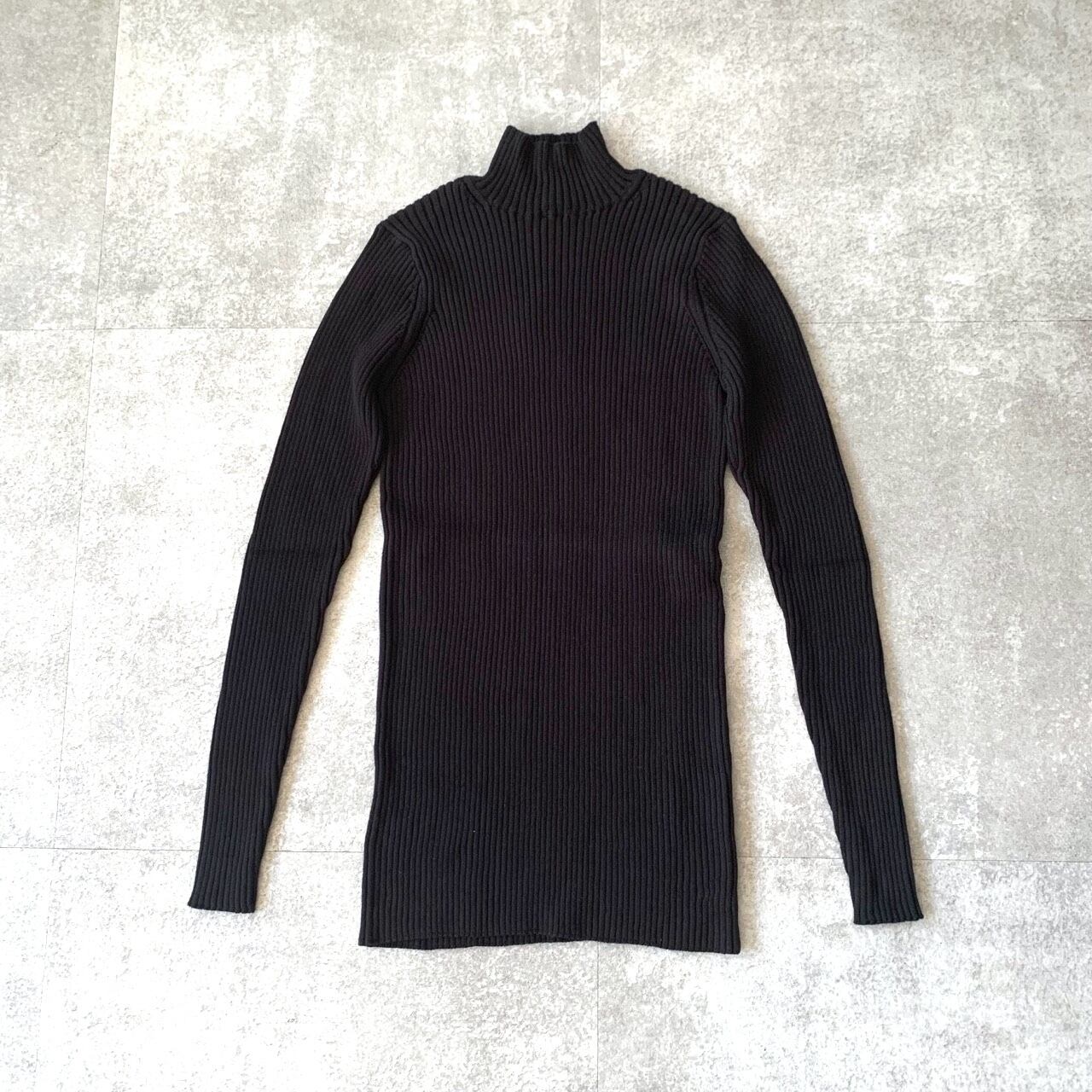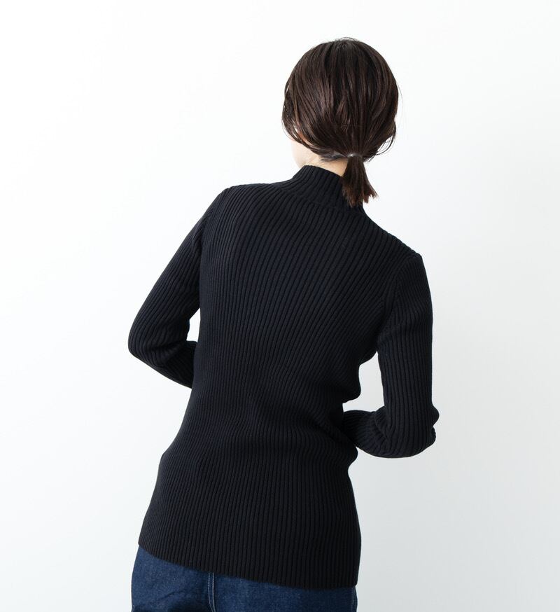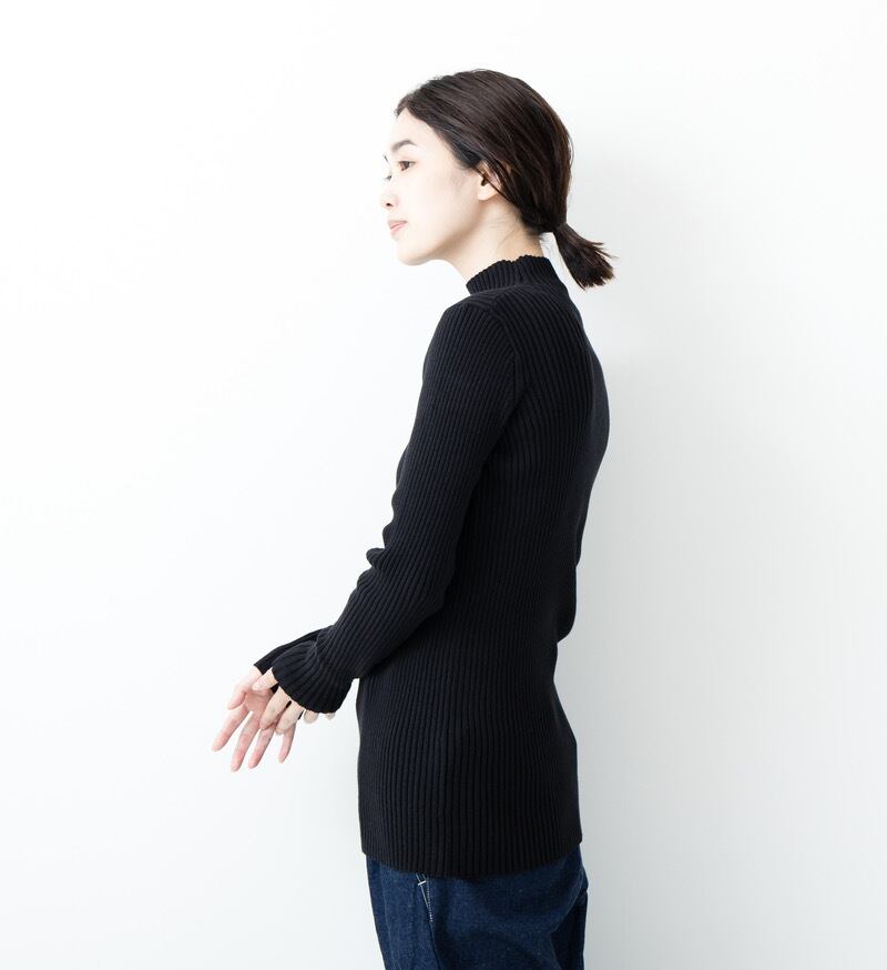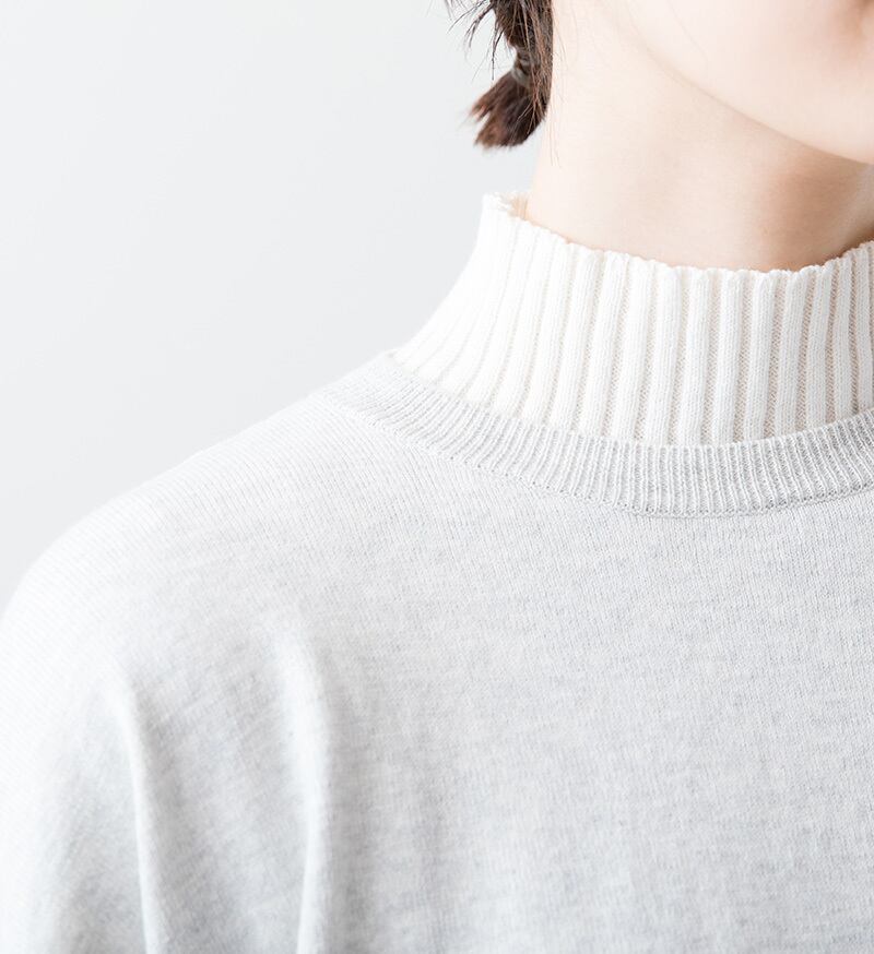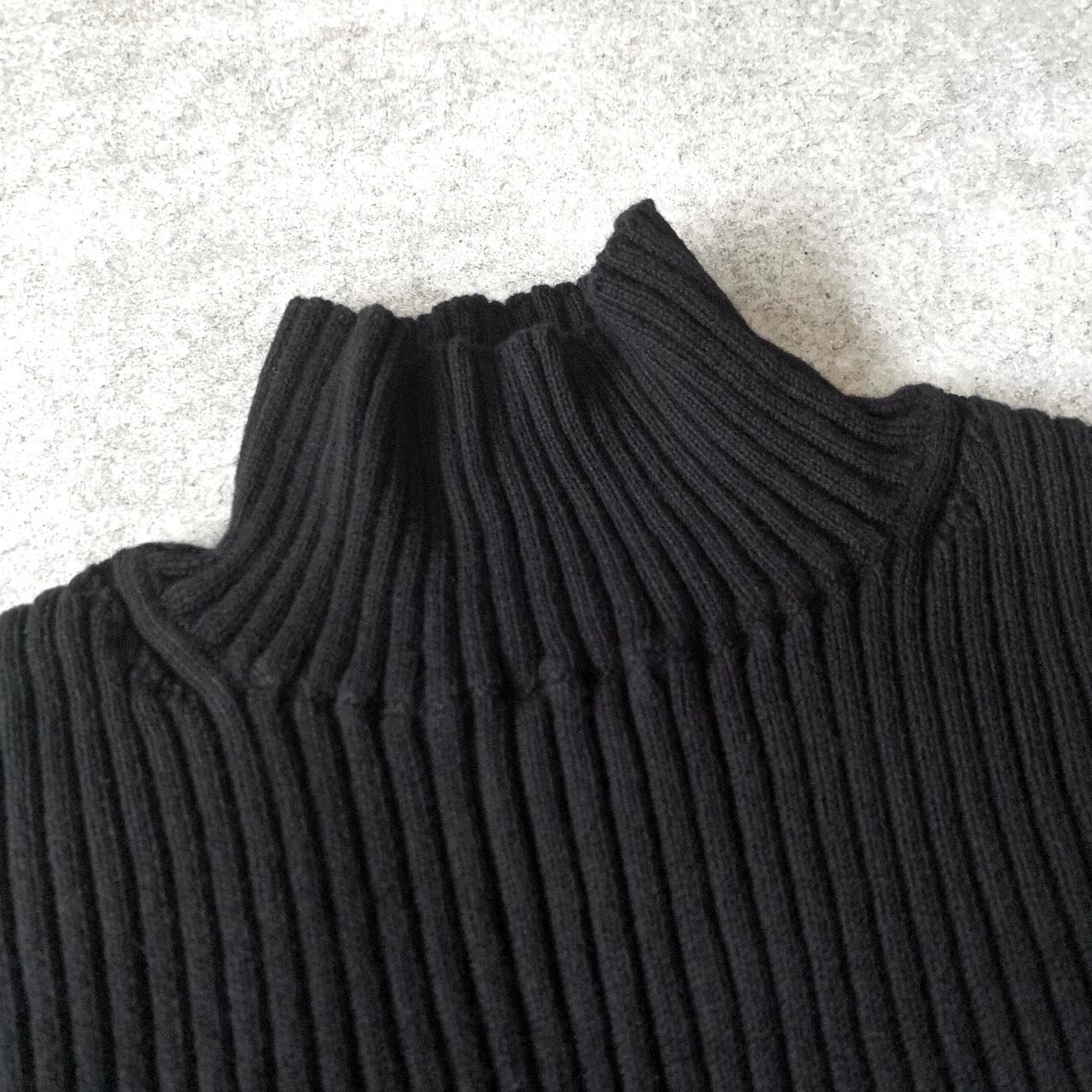 高品質のカシミヤと綿から紡がれた糸を使用しお作りしたハイネックリブニットです。