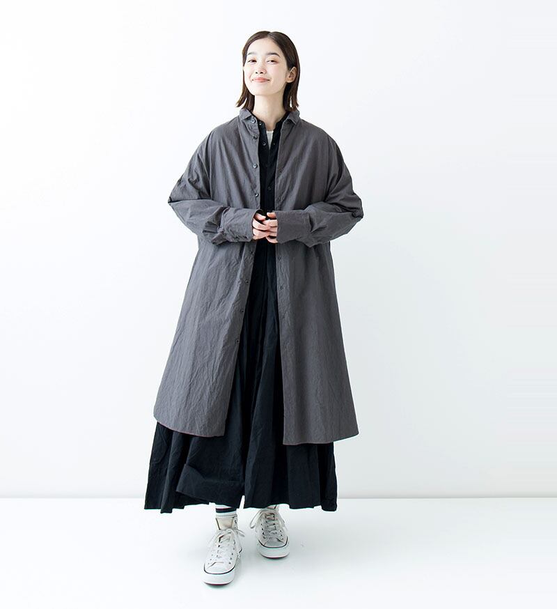 長くご好評いただいているロングシャツ。VC-1962型と同じシルエットです。ハリのあるコットン生地を使用し、着用するごとに馴染んでゆくのが特長で、ゆとりある身幅と、風通しの良い着心地も魅力です。また、WHITEには透け防止加工を施しておりますので、透け感が苦手な方でもお選び頂きやすい1枚です。前開きなので、軽い羽織としても大変便利なアイテムです。